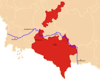 - ↑ Lubomeriae et Galliciae Regni Tabula Geographica (1775) F.L. Gussefeld.