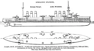 Typowy późny francuski krążownik pancerny „Ernest Renan” z 1909
