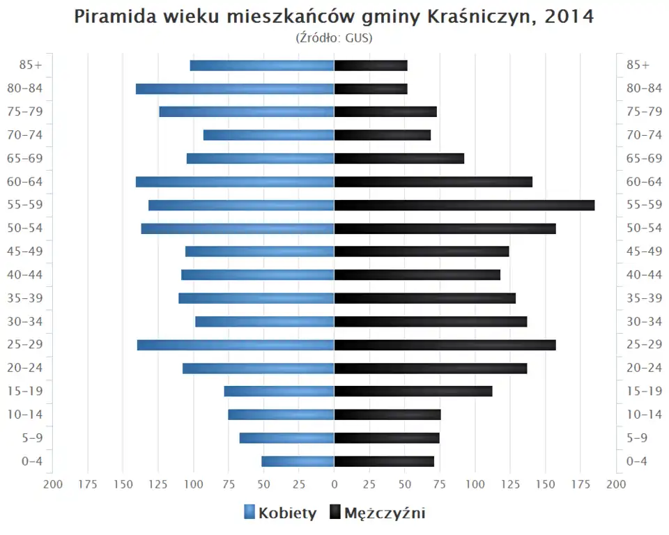 - Piramida wieku mieszkańców gminy Kraśniczyn w 2014 roku[1].