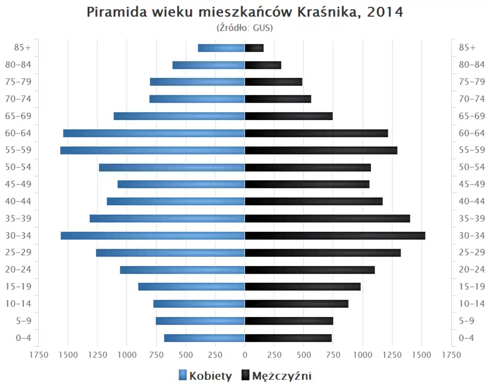 - ↑ Kraśnik w liczbach [online], Polska w liczbach [dostęp 2016-01-09], liczba ludności na podstawie danych GUS.