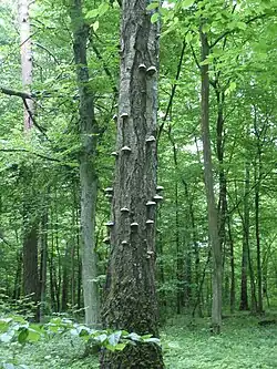 Dla lasów Krainy Mazursko-Kurpiowskiej charakterystyczna jest dominacja świerka pospolitego. Inne częstsze gatunki drzew to sosna zwyczajna, grab pospolity i lipa drobnolistna. Buk zwyczajny występuje jedynie wyspowo, a zachodnia granica krainy jest w przybliżeniu zbieżna ze wschodnią granicą jego zasięgu. Trzy większe kompleksy leśne to Puszcza Borecka, Puszcza Piska i Puszcza Kurpiowska (Zielona). Zespoły leśne obu okręgów nieco się różnią (np. w okręgu kurpiowsko-piskim większy udział ma sosna, a mniejszy grab i lipa, a Pojezierze Mazurskie nawiązuje do Krainy Suwalsko-Augustowskiej m.in. obecnością świerczyny na torfie)[1].