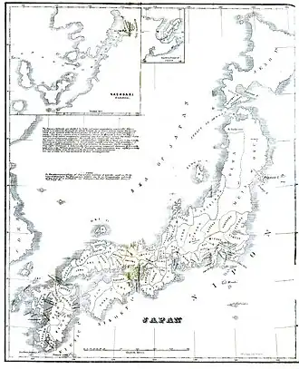 Japonia położona jest na 14 125 wyspach[4][a]. Punktem wysuniętym najdalej na północ jest przylądek Sōya (45°31′N) na północnym krańcu wyspy Hokkaido, a punktem wysuniętym najdalej na południe jest miniarchipelag trzech wysepek o nazwie Oki-no-Tori-shima (20°25′N). Natomiast w przypadku wzięcia pod uwagę wyłącznie czterech głównych wysp, najbardziej wysuniętym na północ punktem jest przylądek Sōya, a najbardziej wysuniętym na południe punktem jest przylądek Sata (30°59′N) na krańcu półwyspu Ōsumi na wyspie Kiusiu. Stolicą państwa jest Tokio (Tōkyō).