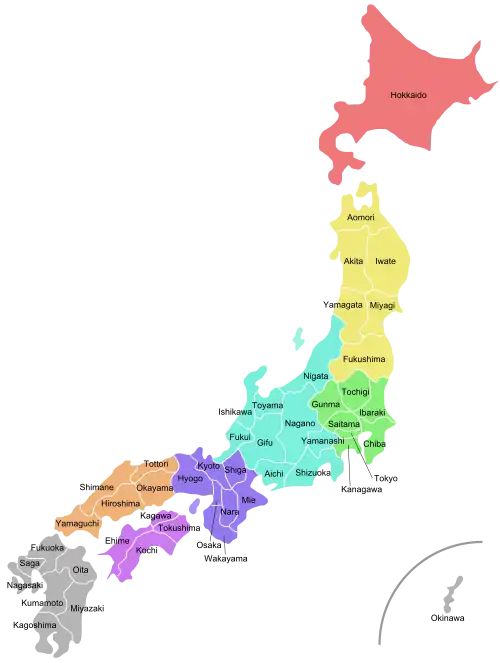Główne wyspy archipelagu to Hokkaido (Hokkaidō), Honsiu (Honshū), Sikoku (Shikoku) i Kiusiu (Kyūshū), co stanowi 97% obszaru lądowego (niekiedy podaje się jako piątą Okinawę). Według danych z 2021 roku, łączna powierzchnia państwa wynosi 377 975 km²[5]. Większość powierzchni jest pokryta górami, a najwyższym szczytem jest wulkan Fudżi (3776 m). Z tego powodu prawie połowa ludności zamieszkuje nadmorski pas nizin rozciągający się między Tokio, Osaką i Nagoją. Tam też rozwijały się rolnictwo i przemysł. Obszar ten stanowi 13% terytorium państwa.