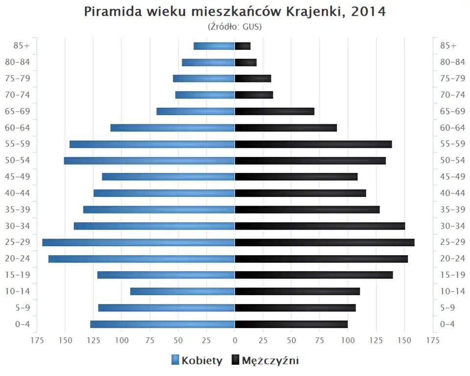 - Piramida wieku mieszkańców Krajenki w 2014 roku[2].