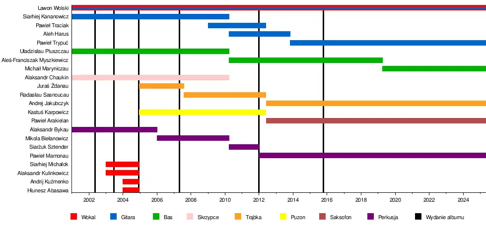 - Uładzisłau Pluszczau – gitara basowa (2001–2010)