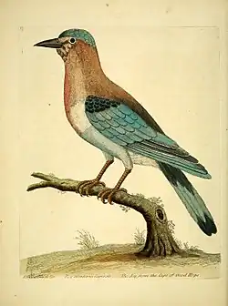 - 1 2 Albin, Eleazar & Derham, W.: A natural history of birds : illustrated with a hundred and one copper plates, curiously engraven from the life. T. 1. 1731, s. 17, pl. 17.