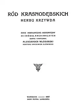 1. Aleksander Włodarski, Ród Krasnodębskich Herbu Krzywda. Szkic Heraldyczno-Historyczny Ze Źródeł Archiwalnych, Warszawa 1927.