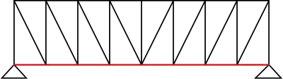 W prostych kratownicach[2] można wyróżnić elementy (pręty) tworzące pas górny, pas dolny (czerwony na rysunku poniżej) oraz łączące je pionowe słupki i ukośne krzyżulce.