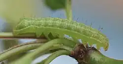 Gąsienice klują się pod koniec kwietnia lub w maju i żerują do czerwca[2][8][5]. Są polifagicznymi foliofagami drzew i krzewów liściastych. Wśród ich roślin pokarmowych wymienia się buki, dęby, głogi, graby, jesion wyniosły, leszczyny, ligustry, lipy, śliwy, topole i wierzby[2][8]. Przepoczwarczenie następuje w glebie, wewnątrz kokonu o wątłej konstrukcji[2][3].