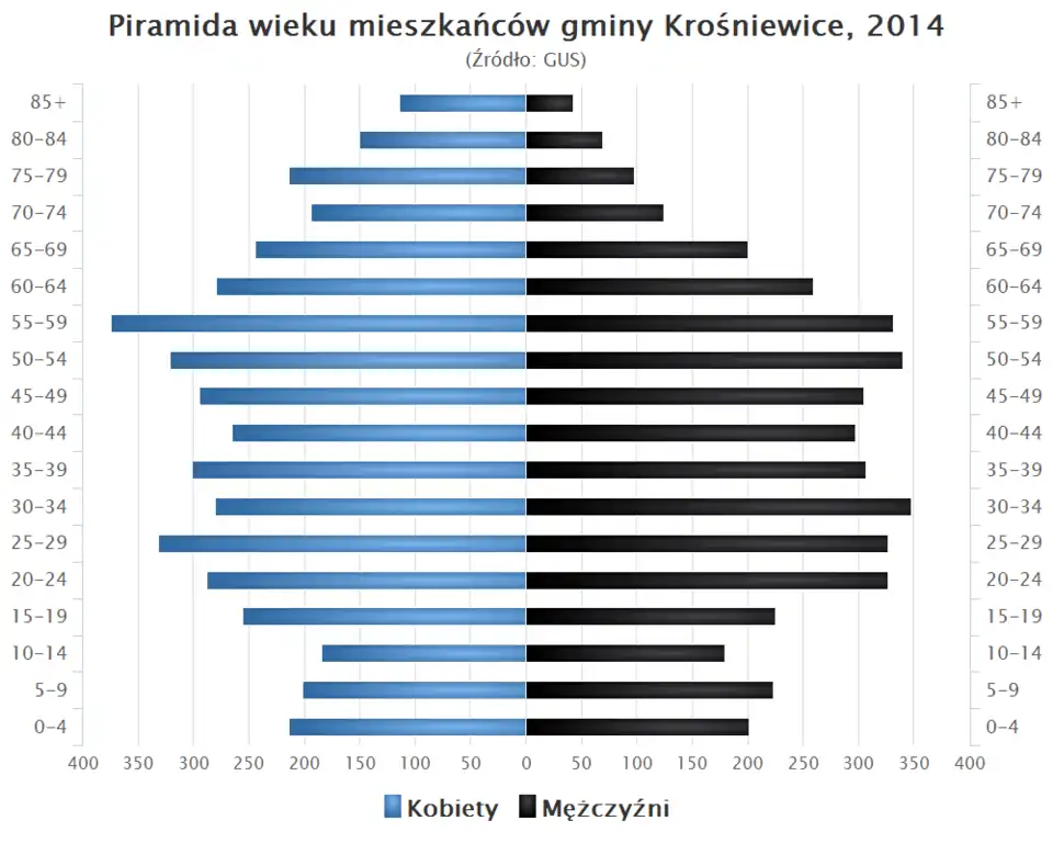 - Piramida wieku mieszkańców gminy Krośniewice w 2014 roku[1].