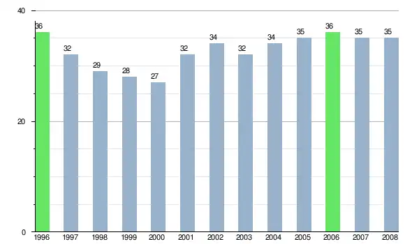 Zmiany liczby ludności w miejscowości Krokava od 1996 roku.