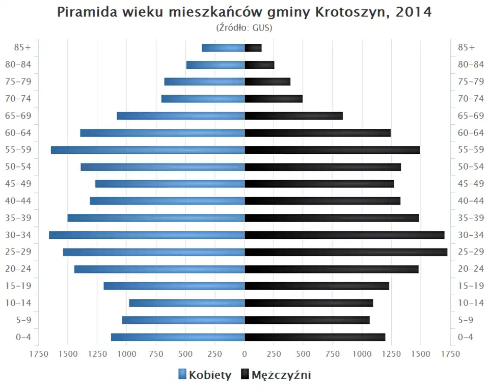 - Piramida wieku mieszkańców gminy Krotoszyn w 2014 roku[1].