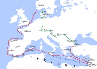 Przepływając Cieśninę Gibraltarską (Norfasund) Norwegowie pokonali kolejną flotę piracką. Będąc już na Morzu Śródziemnym (Griklands hafi) obrali kurs na Baleary. Wyspy te były wówczas postrzegane przez chrześcijan jako siedlisko piratów i centrum handlu niewolnikami. Norweski rajd na Baleary był pierwszym, większym odnotowanym atakiem chrześcijan na tamtejszych muzułmańskich piratów. Wcześniejsze próby są albo niepotwierdzone, albo były bardzo nieznaczne[3].