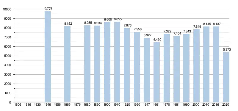 - Źródła: NIS, od 1806 do 1981= według spisu; od 1990 liczba ludności w dniu 1 stycznia