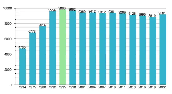 Według danych GUS z 30.06.2015 roku miasto miało 9035 mieszkańców[19].