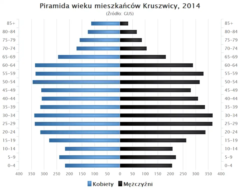 - Piramida wieku mieszkańców Kruszwicy w 2014 roku[18].