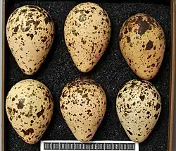 - W ciągu roku wyprowadza jeden lęg, składając w kwietniu–czerwcu 4 brunatnawe jaja, ciemno kropkowane na grubym końcu.