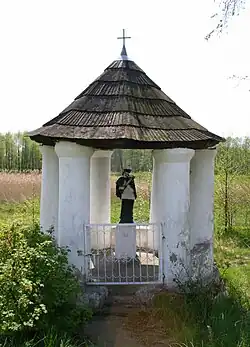 - Kaplica przydrożna z XIX wieku, w niej figura Nepomuk z 1728 roku.