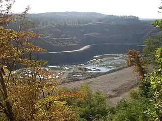 Po II wojnie światowej miękiński porfir mielono przeważnie na grysy i drobne kruszywo do produkcji betonów, budowy dróg. W 1960 roku zlikwidowano przestarzałą już kolejkę linową, a wybudowano bocznicę kolejową do stacji kolejowej w Krzeszowicach. Czerwony porfir stosowany był do wyrobu materiałów drogowych (kamień łamany, tłuczeń, kliniec i grysy). Kostka brukowa z porfiru miękińskiego należała do materiałów kamiennych najbardziej typowych, a zarazem mających dużą wytrzymałość. W latach 70. XX w. zaniechano eksploatacji porfiru i zlikwidowano bocznicę kolejową do pobliskich Krzeszowic. Obecnie w miejscu tym widać ogromne wyrobisko o powierzchni 40 ha i głębokości do ok. 50 m. Na dnie łomu znajduje się staw zasilany wodą źródlaną. Znajduje się tutaj nieczynne wyrobisko o powierzchni ok. 40 ha, ze stawem zasilanym wodą źródlaną. Jest ono obecnie wykorzystywane jako teren rekreacyjny.