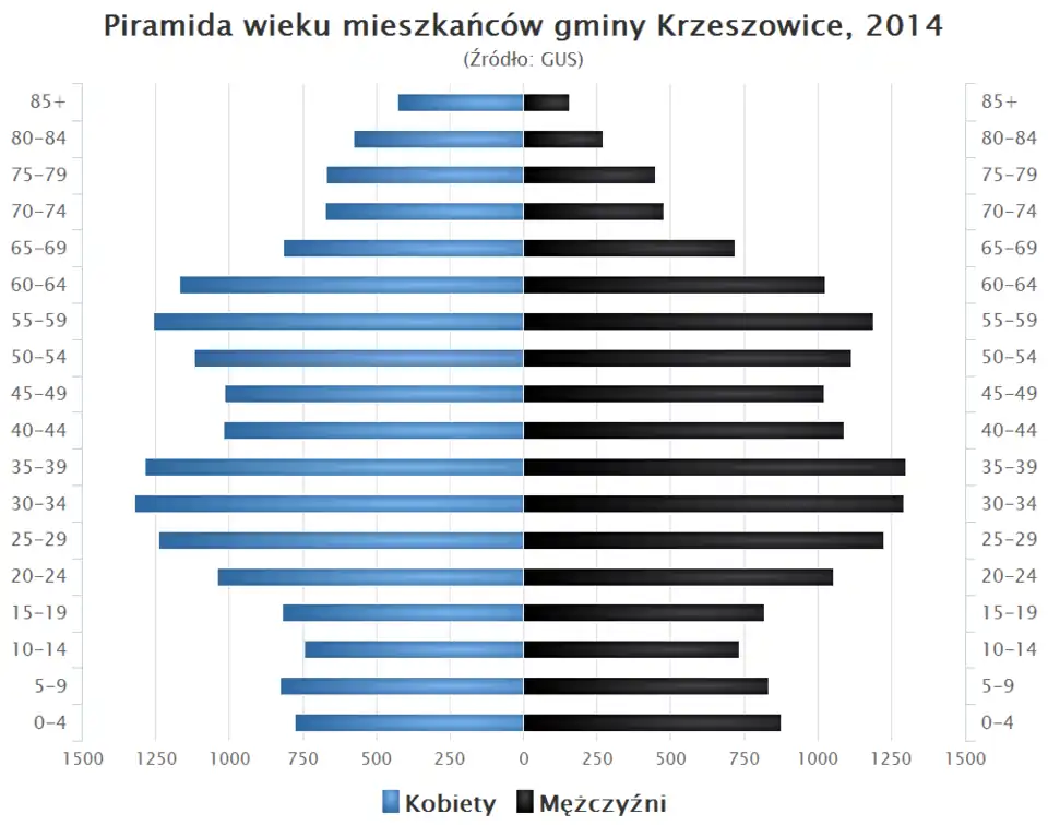 - Piramida wieku mieszkańców gminy Krzeszowice w 2014 roku[3].