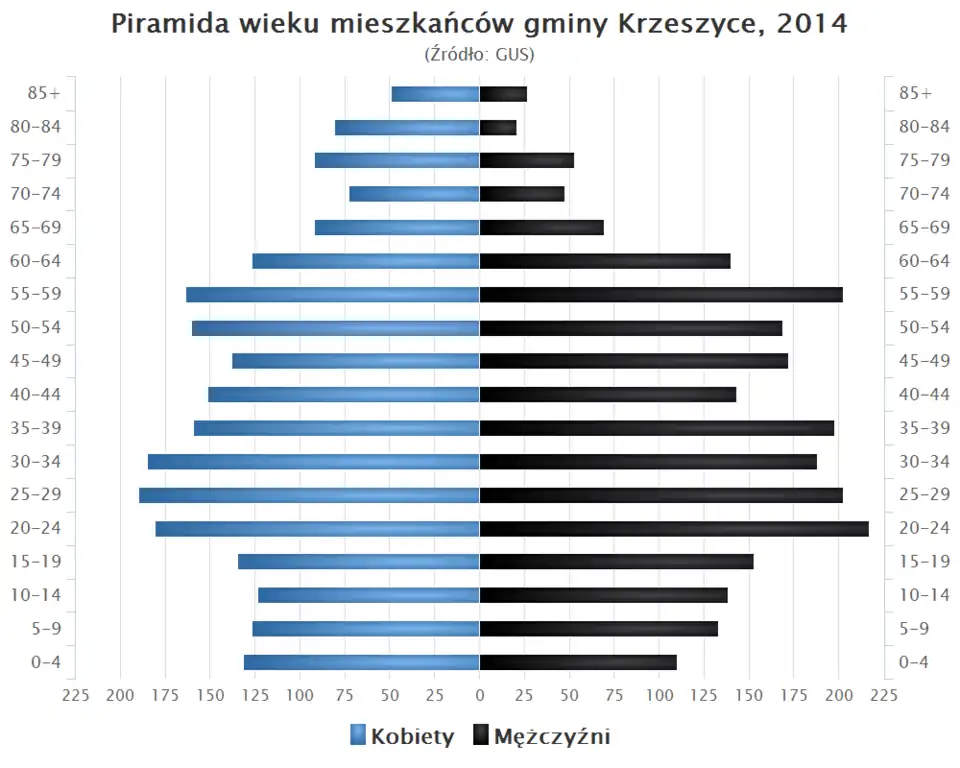 - Piramida wieku mieszkańców gminy Krzeszyce w 2014 roku[1].