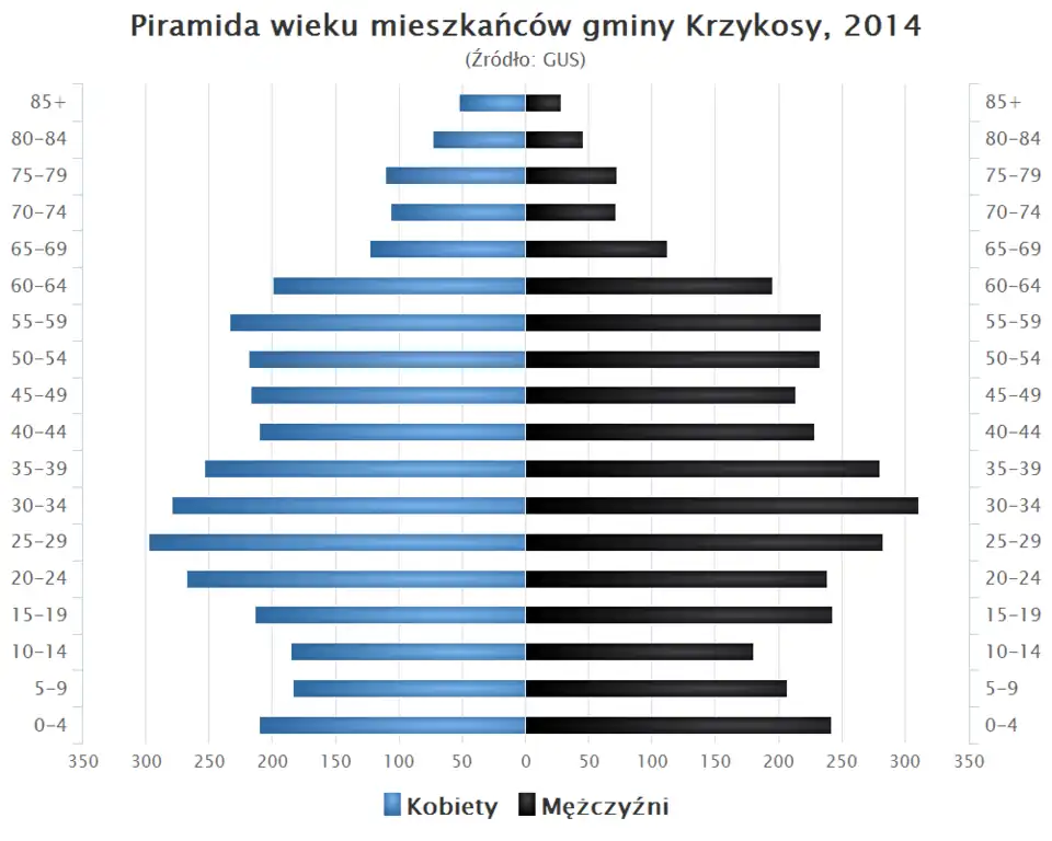 - Piramida wieku mieszkańców gminy Krzykosy w 2014 roku[1].