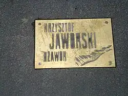 - Tablica z jego imieniem i nazwiskiem wmurowana została w białostockiej Alei Bluesa[26].