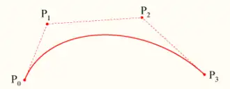 Najczęściej używane są krzywe trzeciego stopnia leżące na płaszczyźnie. Definiując krzywą trzeciego stopnia, określa się 4 punkty i (na rysunku odpowiednio ), których położenie wyznacza przebieg krzywej. Krzywa ma swój początek w punkcie i skierowana jest w stronę punktu Następnie zmierza w stronę punktu , dochodząc do niego od strony punktu Odcinek jest styczny do krzywej w punkcie natomiast odcinek jest styczny w punkcie