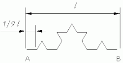 Krzywa Kocha w kroku pierwszym po transformacji zawiera 4 odcinki, każdy równy W kolejnym kroku każdy z tych odcinków ponownie zostanie podzielony na 3 części, a środkową znów zastąpimy dwoma odcinkami.