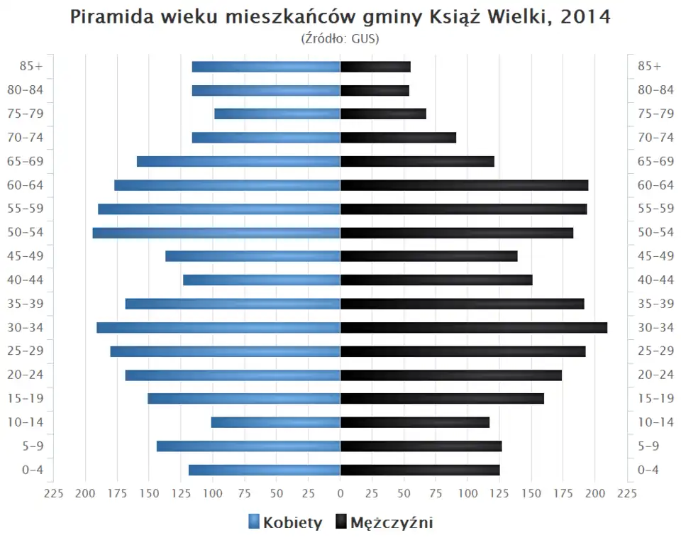 - Piramida wieku mieszkańców gminy Książ Wielki w 2014 roku[1].