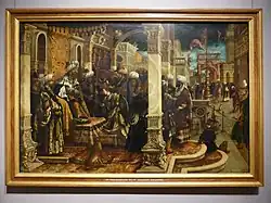- ↑ Wszystkie imiona za Biblią Tysiąclecia łac. Aswerus – hebr. Achaszwerosz, pers. Estera – hebr. Hadassa, pers. Mardocheusz – hebr. Mordokai, łac. Aman – hebr. Haman[1]