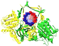 - ↑ J.R. Walker, R.A. Corpina, J. Goldberg. Structure of the Ku heterodimer bound to DNA and its implications for double-strand break repair. „Nature”. 412 (6847), s. 607–614, 2001. DOI: 10.1038/35088000. PMID: 11493912.