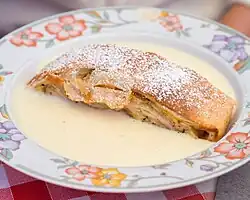 Chlubą kuchni wiedeńskiej są jednak dania słodkie: od naleśników (np. z czarną porzeczką – Moosbeernocken) i knedli aż po torty (np. Linzer Torte). Należy do nich strudel (zwłaszcza jabłkowy – Apfelstrudel), wiedeński sernik (Topfenkuchen), morelowe knedle (Marillenknödeln aus Brandteig), szeroko znany czekoladowy tort Sachera czy wykwintny tort ananasowy (Ananastorte)[6]. Do wypieków tradycyjnych należy m.in. budyń czekoladowy okładany bitą śmietaną (Mohr im Hemd) i znana w Polsce babka z ciasta drożdżowego/biszkoptowego z rodzynkami (Guglhupf). Popularne są kruche rogaliki-rożki (Kipferln), często ze słodkim nadzieniem (waniliowym, orzechowym, maślanym itp.)[5]. Znacznie cięższe i tłustsze od polskich są niezwykle lubiane w kuchni wiedeńskiej pączki, wypiekane również na szczególne okazje (Trzech Króli, Wielkanoc, noc świętojańską itp.) – m.in. z jagodami jałowca, wśród których np. tyrolskie wyróżniają się kształtem trójkątnym. Smażone na smalcu, ale twarde i ciężkie, nadziewane są (podobnie jak polskie) owocową konfiturą i posypywane cukrem pudrem[4].