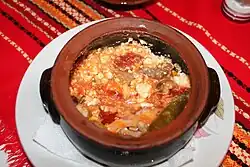 - giuwécz – gulasz mięsno-warzywny z ryżem podawany w glinianych naczyniach (giuweczeta)