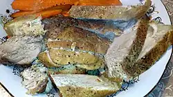 - pieczona i smażona wieprzowina z dodatkiem kapusty i ziemniaków,