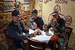 - ↑ „Gulasz obok strudla i piszingera, paprykarz i ogórki z miodem – zastawiony stół najlepiej obrazuje wielokulturowość Galicji.” Prof. Jarosław Dumanowski o kuchni galicyjskiej magazyn-kuchnia.pl 2014-11-28.