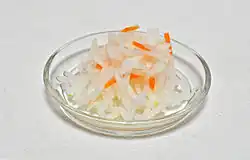 - tsukemono – japońskie pikle, czyli warzywa marynowane lub poddane fermentacji mlekowej w celu ich dłuższego przechowywania;