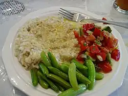 - dolma (orm. տոլմա) – tradycyjne danie z mięsa mielonego owiniętego w liście winogron[12]. W innej wersji są to warzywa, takie jak bakłażany, pomidory i papryka, nadziewane ryżem z mięsem[1].