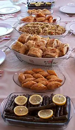 - dolma – warzywa z farszem lub liście winogron, w które zawija się ryż z mięsem