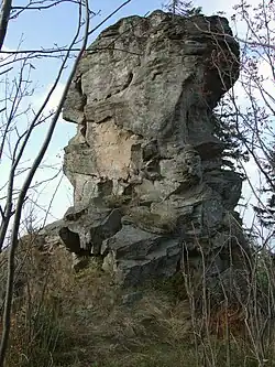 Zbudowany jest z odpornych na wietrzenie gruboławicowych piaskowców i zlepieńców. Znajduje się w lesie, tuż przy czarnym szlaku turystycznym z Lubomierza na szczyt Kudłonia (1274 m), poniżej Polany Kudłoń, już na obszarze Gorczańskiego Parku Narodowego. Silne wichury w 2004 r. przerzedziły sporo las, przez co skała jest dobrze eksponowana. W spękaniach skały licznie zakwita dzwonek wąskolistny, znaleźć też można skalnicę gronkową, która ma w tej okolicy jedyne stanowiska w Gorcach[3].