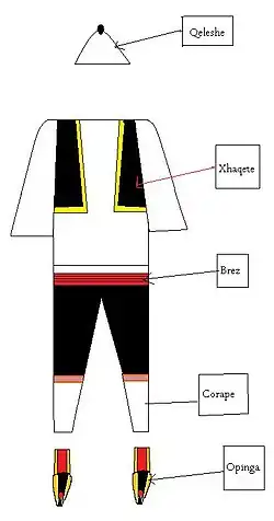 Rozróżnia się ponad 200 rodzajów tradycyjnych strojów albańskich. Strój ludowy zawiera symbole pogańskie z czasów starożytności, takie jak słońce, orzeł, księżyc, gwiazdy i wąż[1]. Praktycznie każdy region kraju posiada odrębny rodzaj stroju. Stroje kobiece są bardziej kolorowe i bogatsze w szczegóły.