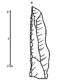 Mikrolity geometryczne: krępe trójkąty, półtylczaki (typu Komornica), tylczaki (typu Stawinoga i lancetowate).
