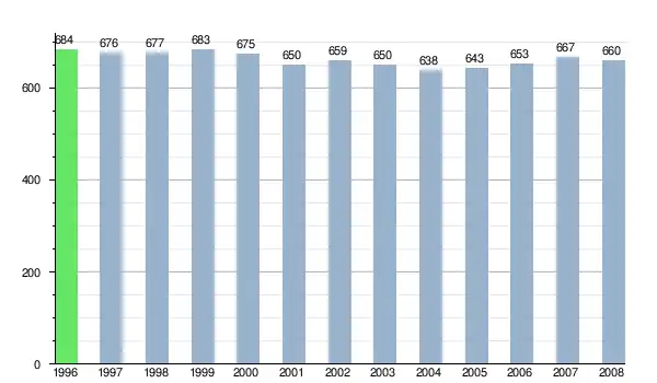 Według danych z dnia 31 grudnia 2012, wieś zamieszkiwało 675 osób, w tym 341 kobiet i 334 mężczyzn[7].