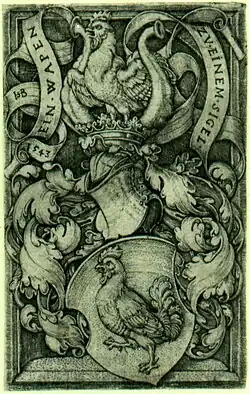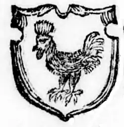 - ↑ Wzór graficzny koguta, jako ptaka heraldycznego, zaczerpnięty z bestiariusza .