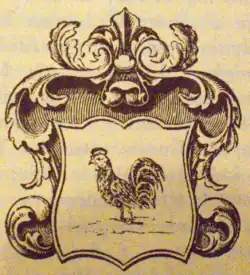 - ↑ Bartosz Paprocki Herby Rycerstwa Polskiego Kraków 1584, wznowiono 1858, s. 774 (Gall z Dalmacji herbu Kur Biały)