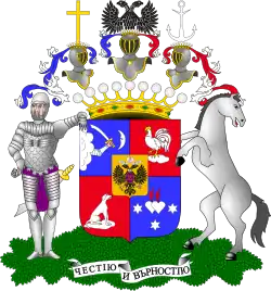 - ↑ Odmiana hrabiowska herbu Kur Fiodora Rostopczyna