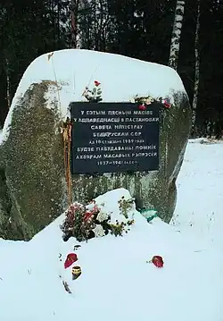 - ↑ Aleś Daszczynski: У Курапатах ушанавалі памяць ахвяраў рэпрэсій. Radio Swaboda, 2008-10-29. [dostęp 2010-04-27]. [zarchiwizowane z tego adresu (2015-03-19)]. (biał.).