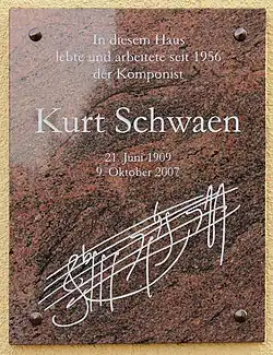 - ↑ Uroczyste odsłonięcie tablicy ku czci kompozytora Kurta Schwaena (pol.) www.katowice.eu [dostęp 2011-05-09]