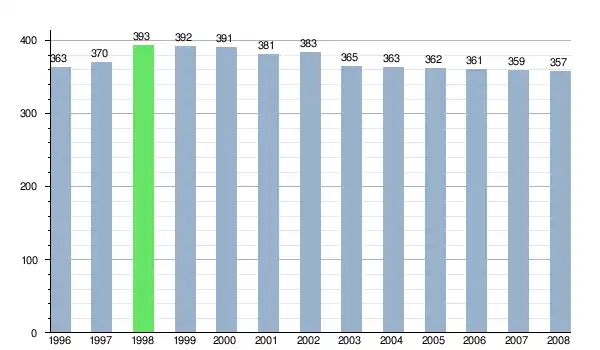 Według danych z dnia 31 grudnia 2012, wieś zamieszkiwało 340 osób, w tym 179 kobiet i 161 mężczyzn[6].
