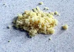 Kuskus (od arab. kaskasa – tłuc, rozbijać) – tradycyjny produkt spożywczy, łączący cechy makaronu i kaszy, a także nazwa przyrządzanej z niego potrawy. Wywodzi się z kuchni krajów Maghrebu (północno-zachodnia Afryka) i ma postać okrągłych ziaren o średnicy rzędu 1 mm, otrzymywanych z pszenicy twardej. Tradycyjnie kuskus był materiałem odpadowym przy mieleniu pszenicy w prymitywnych, kamiennych żarnach. Gruba pozostałość z mielenia pszenicy była odsiewana z mąki, namaczana w wodzie, oprószana właściwą mąką i sprzedawana jako kuskus. Współcześnie kuskus częściej produkuje się z wysoko gatunkowej semoliny, gruboziarnistej mąki pszennej, wody i dodatków. Otrzymany granulat jest przesiewany przez sita o odpowiedniej średnicy. Jednak w handlu wciąż można spotkać kuskus produkowany z rozdrobnionych ziaren pszenicy, choć najczęściej przy udziale nowoczesnych technologii[1].